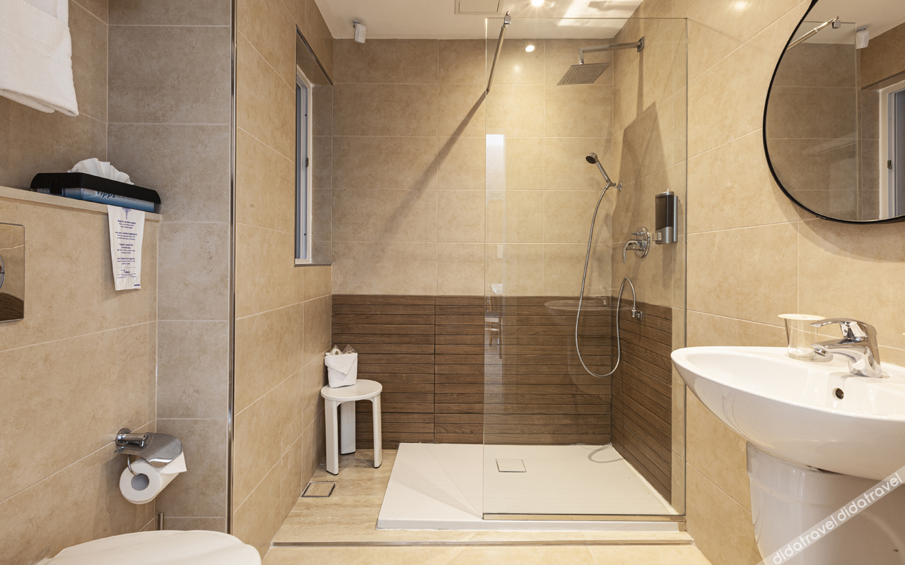 DELUXE 2-BEDROOM APARTMENT INLAND VIEW is 431 square feet and includes 2 single beds 80-130 width plus satellite tv , hairdryer, tea and coffee making facilities , ironing set, safe, and bathrobes.