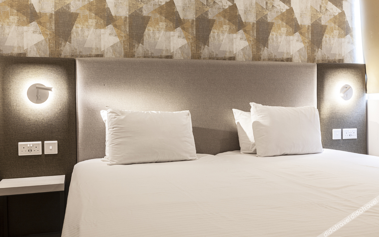 STANDARD TWIN/DOUBLE ROOM is 269 square feet and includes either 2 single beds 80-130 width or a double bed 131-150 width plus rollaways on demand plus extra beds on demand, satellite tv , hairdryer, tea and coffee making facilities , ironing set, safe, and bathrobes.